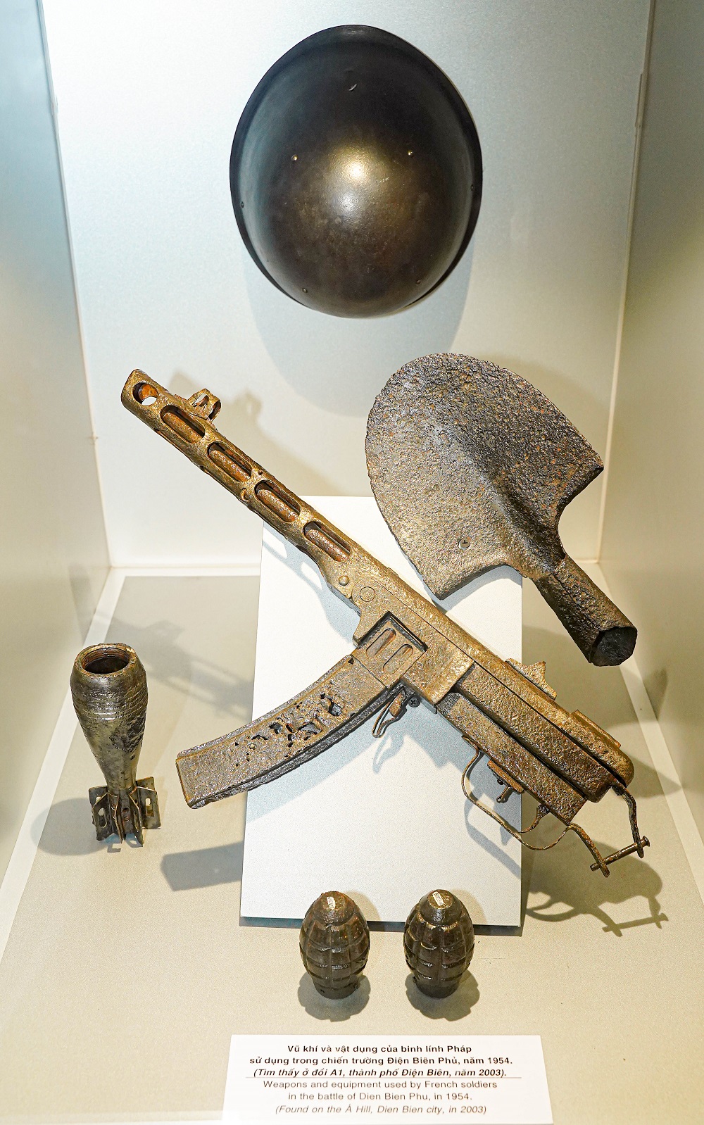 Hiện vật vũ khí và vật dung của binh lính Pháp sử dụng trong chiến trường Điện Biên Phủ năm 1954.
