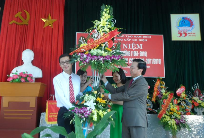 | Ông Cao Xuân Hùng, Giám đốc Sở Giáo dục & Đào tạo tỉnh Nam Định tặng hoa chúc mừng nhà trường. |