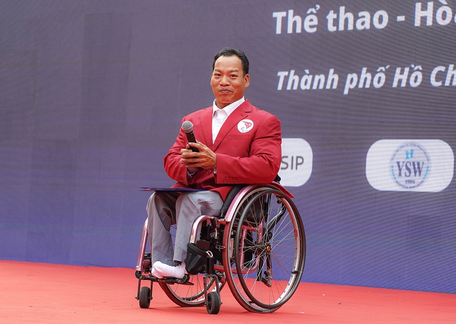 Lực sĩ cử tạ Lê Văn Công thay mặt cho những người khuyết tật, các vận động viên khuyết tật Việt Nam chia sẻ cảm nghĩ lại chương trình. Được biết vận động viên khuyết tật Lê Văn Công sinh năm 20/6/1984, quê quán Hà Tĩnh. Anh từng giành được Huy chương Vàng bộ môn cử tạ tại ASEAN PARA GAMES 2022. Từ năm 2007 đến nay, anh đã giành được vô số giải thưởng, huy chương từ các giải đấu thể thao dành cho người khuyết tật tại các đấu trường quốc tế.