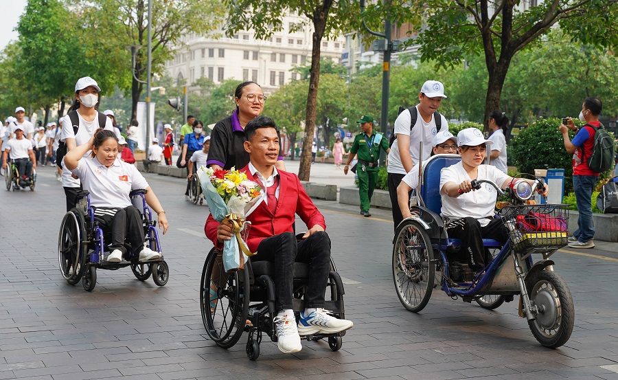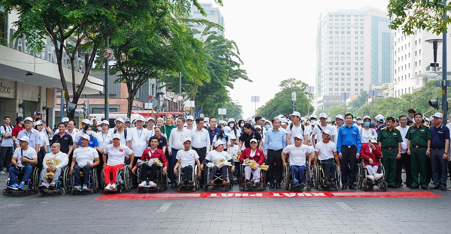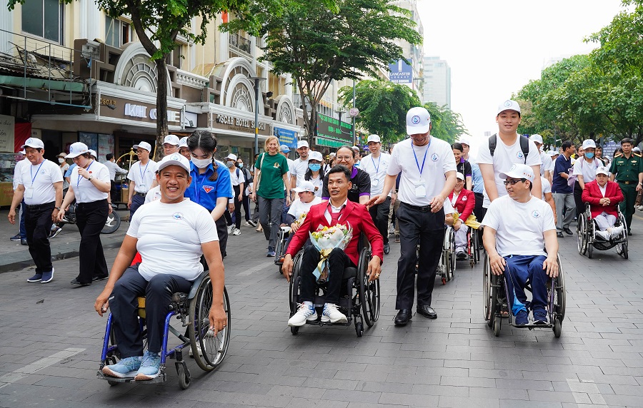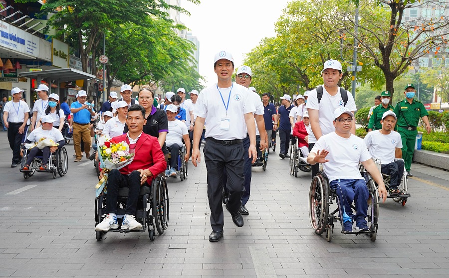 Thứ trưởng Bộ Lao động – Thương binh và Xã hội Nguyễn Văn Hồi đi bộ cùng đoàn người khuyết tật tại chương trình kỷ niệm Ngày người khuyết tật Việt Nam.