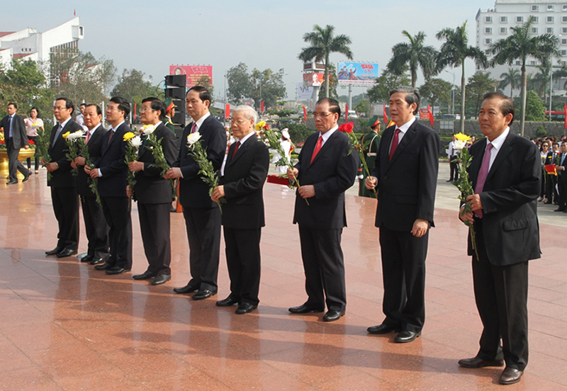 Tổng Bí thư Nguyễn Phú Trọng, nguyên Tổng Bí thư Nông Đức Mạnh, Chủ tịch nước Trần Đại Quang, nguyên Chủ tịch nước Trương Tấn Sang, Thường trực Ban Bí thư Trung ương Đảng Đinh Thế Huynh, Phó Thủ tướng Thường trực Chính phủ Trương Hòa Bình, Trưởng Ban Tuyên giáo Trung ương Võ Văn Thưởng tham dự lễ kỷ niệm.