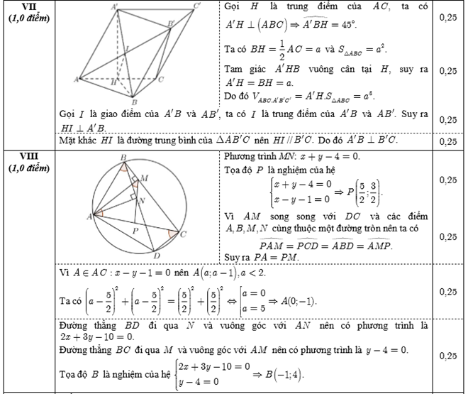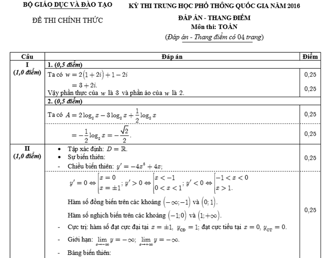 Kỳ thi THPT Quốc gia 2016: Đáp án môn Toán