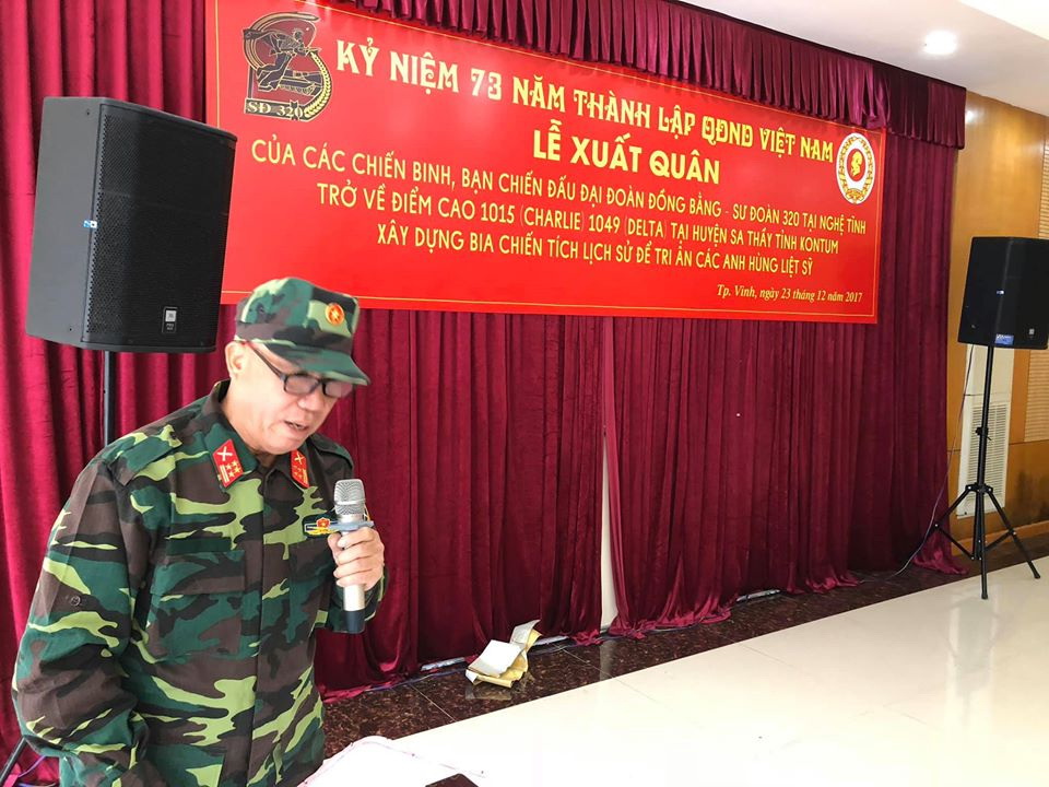 Ngày 19/12/2017, Ban liên lạc truyền thống Đại Đoàn Đồng Bằng Sư Đoàn 320 Nghệ An - Hà Tĩnh tổ chức gặp mặt kỷ niệm 73 năm ngày thành lập quân đội nhân dân Việt Nam (22/12/1944 - 22/12/2017). Khi đồng chí trưởng ban liên lạc thông báo chủ trương xây dựng nhà bia tri ân các anh hùng liệt sỹ đã hy sinh ở điểm cao 1015- 1049 và ngỏ ý muốn có sự tham gia đóng góp bằng công của, của các chiến binh. Câu nói của đồng chí trưởng ban vừa dứt lời thì dưới hội trường, hàng trăm cánh tay giơ cao xung phong xin được trở về chiến trường xưa tham gia xây dựng nhà bia. Những chiến binh già nua, gương mặt nhăn nheo, mái tóc bạc phơ, nhưng ánh mắt sáng long lanh ngấn lệ. Tất cả đồng loạt giơ thẳng cánh tay lên cao về phía trước thể hiện quyết tâm về miền đất lịch sử - cách hàng ngàn cây số để được ở bên linh hồn đồng đội, những người bạn đã nằm lại cách đây 46 năm. Hình ảnh những người lính già ngồi nghiêm nghị giơ tay đồng thanh nói: “cho chúng tôi đi”, thật cao đẹp, thiện lương, đầy ý nghĩa nhân văn, như ngọn lửa sưởi ấm tình đồng chí. Họ thiết tha gửi gắm tình cảm thiêng liêng cao cả về dãy điểm cao 1015 (CHARLIE) - 1049 (DELTA). Một ý chí, một tâm nguyện nung nấu trong lòng bấy lâu nay, giờ được bày tỏ.