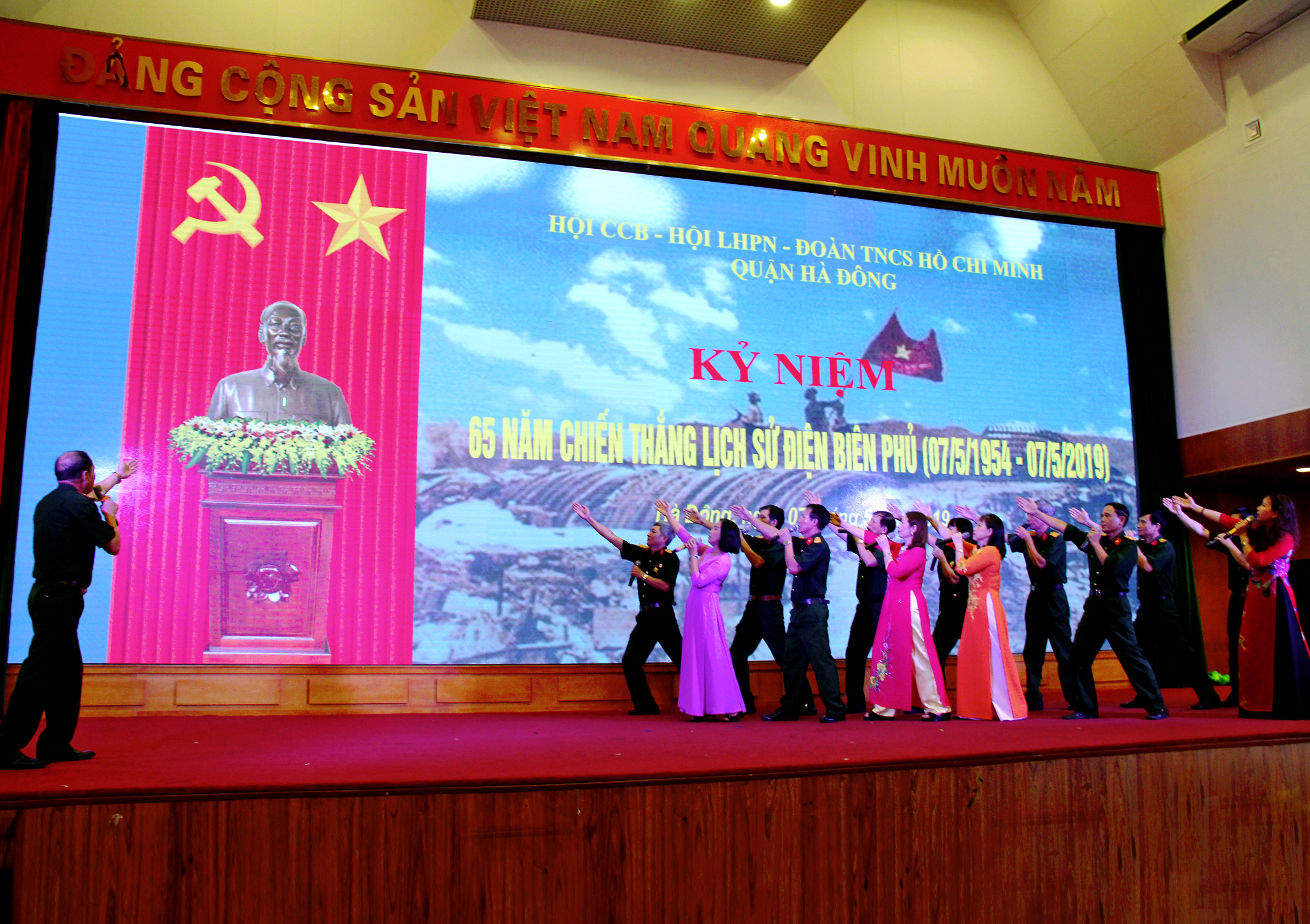 Tri ân các chiến sĩ Điện Biên năm xưa, Các đ/c lãnh đạo Hội CCB, Hội Phụ nữ, Đoàn thanh niên thành phố Hà Nội và Quận Hà Đông đã lên trao tặng 65 chiến sĩ Điện biên năm xưa 65 túi quà (gồm quà và 300.000đ tiền mặt) của Hội CCB quận - Hội liên hiệp phụ nữ và Đoàn TNCS Hồ Chí Minh quận Hà Đông.