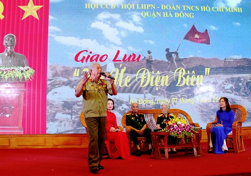 Sau lễ kỷ niệm, một chương trình giao lưu “Ký ức Điện Biên Phủ” và gặp mặt thân mật với các chiến sĩ trực tiếp tham gia chiến dịch Điện biên phủ năm xưa đã được tổ chức trong không khí ấm tình đồng chí, đồng đội. Phần giao lưu, trò chuyện diễn ra giữa đại biểu các cựu chiến binh Chiến dịch Điện Biên Phủ (Đ/c Đại tá Nguyễn Sơn Tùng - nguyên hiệu trưởng trường thiết giáp, trực tiếp tham gia chiến dịch Điện Biên Phủ tại Đại đội 632, tiểu đoàn 970 trung đoàn 176, đại đoàn 316); đ/c thượng sỹ Lê Văn Nhân tham gia chiến dịch Điện Biên Phủ tại đại đội 17, tiểu đoàn 564, trung đoàn 165 đại đoàn 312; Đ/c Đại úy Đỗ Thị Vấn tham gia chiến dịch Điện Biên Phủ tại đội điều trị 3, Cục quân y) với các thế hệ Cựu chiến binh, Các thế hệ phụ nữ và thế hệ trẻ quận Hà đông. Các đại biểu Cựu chiến binh tham gia chiến dịch Điện Biên Phủ đã tái hiện ký ức hào hùng của quân và dân ta trong Chiến dịch Điện Biên Phủ, cuộc sống sinh hoạt chiến đấu của người lính tại căn cứ địa Điện Biên Phủ gian khổ nhưng hào hùng. Đ/c Lê Văn Nhân Chiến sĩ Điện biên năm xưa bày tỏ: "Buổi gặp mặt khiến tôi rất xúc động. Xúc động bao nhiêu càng nhớ các đồng chí, đồng đội đã anh dũng, hy sinh để đất nước được độc lập thống nhất như ngày hôm nay".