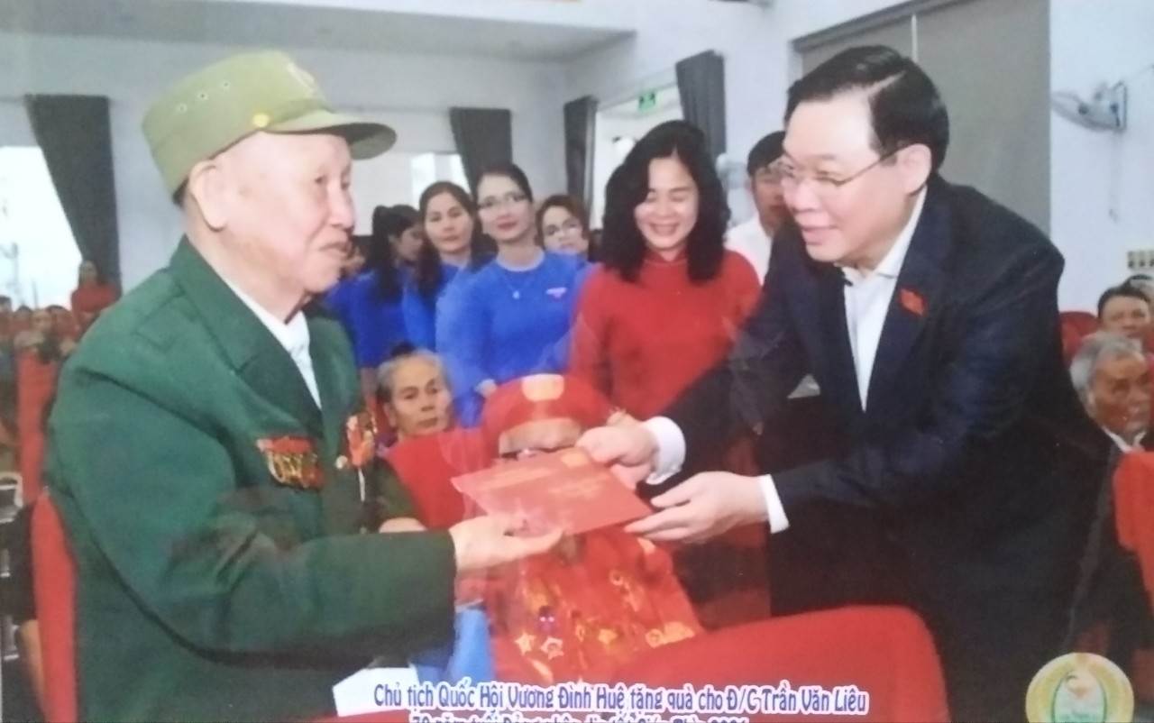 Chủ tịch Quốc hội Vương Đình Huệ tặng quà cho ông Trần Văn Liêu