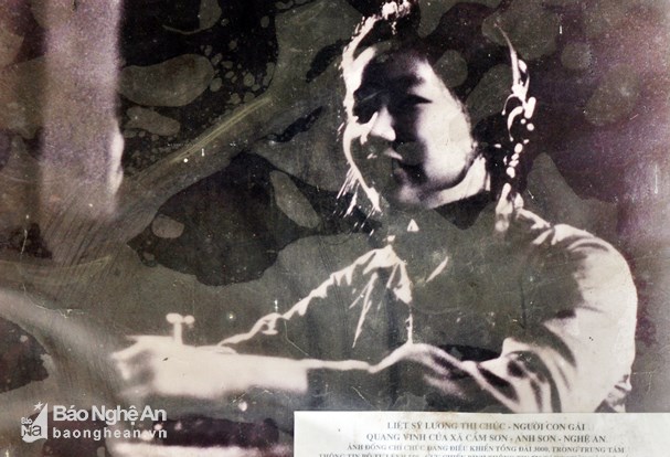 | Bức ảnh liệt sỹ Lương Thị Chúc (người con thứ 3 của Mẹ Quý) trong căn hầm liên lạc giữa núi rừng Trường Sơn. Ảnh: GĐCC |
