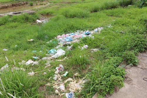 | Đường đi ngổn ngang cây cỏ và ngập rác thải |