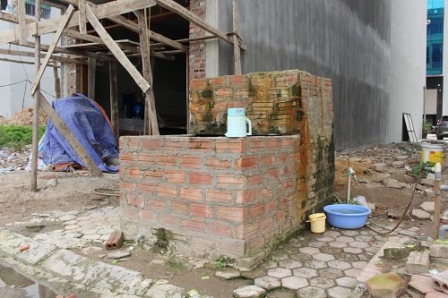 | Có những hộ dân không có đường để đi nhà đang quá trình xây dựng phải đục tường để đi |