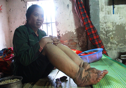 | Đôi chân mắc chứng bệnh kỳ lạ của chị Phạm Thị Tỉnh. |