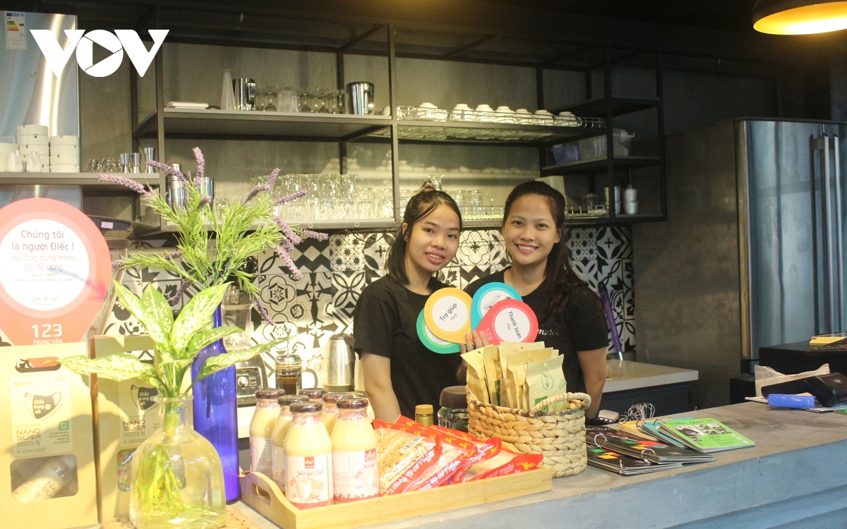 Sản phẩm do chính những nhân viên "đặc biệt" của quán làm ra. Ảnh VOV