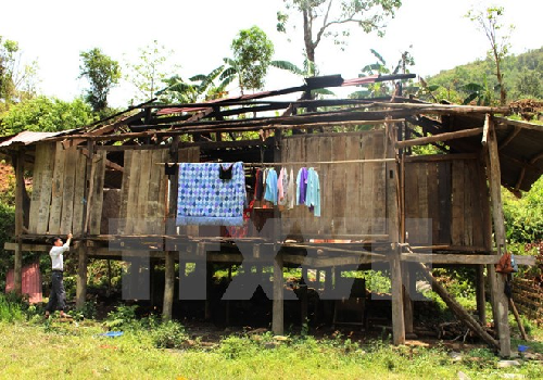 Một nhà dân bị tốc mái do gió lốc. (Nguồn: TTXVN)