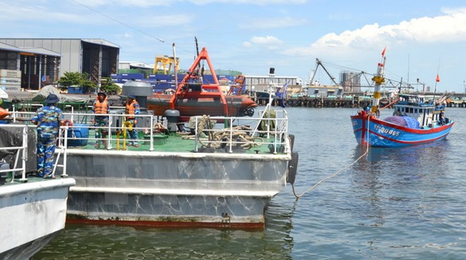 Lai dắt một tàu cá vào bờ. (Ảnh minh họa: Đoàn Hữu Trung/TTXVN)