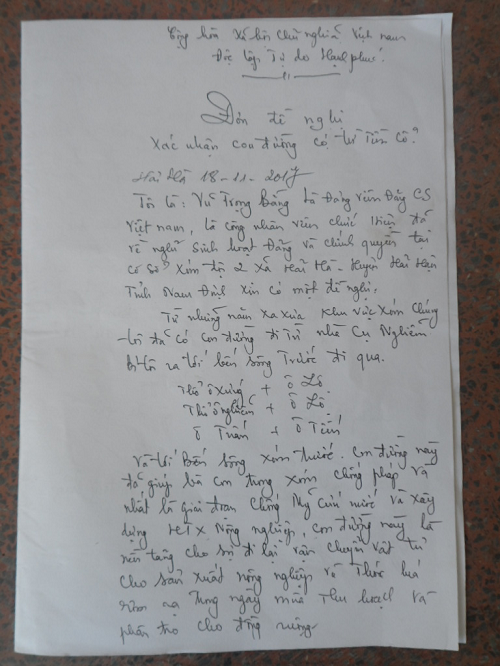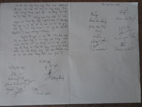 | Đơn và chữ ký xác nhận của người dân xóm 2 xã Hải Hà (Hải Hậu, Nam Định) về con đường dong ngõ có từ thời tiền cổ. |