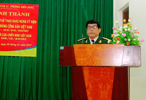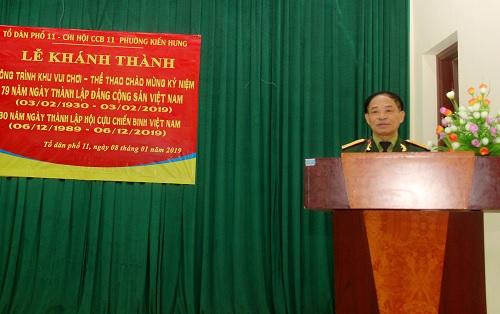 Tại hội trường tổ dân phố 11, trong buổi lễ khánh thành công trình có sự hiện diện của đồng chí Nguyễn Hồng Anh - Chủ tịch Hội CCB quận Hà Đông cùng các đ/c thường trực Quận Hội; đồng chí Hoàng Văn Mạnh Đảng - Ủy viên, phó Chủ tịch HĐND phường; đồng chí Lê Ngọc Lưu - Chủ tịch Hội CCB cùng các đ/c trong Ban thường vụ Hội CCB phường Kiến Hưng, các đ/c lãnh đạo tổ dân phố 11 cùng đại biểu các Hội đoàn thể cũng đã về dự đông đủ.