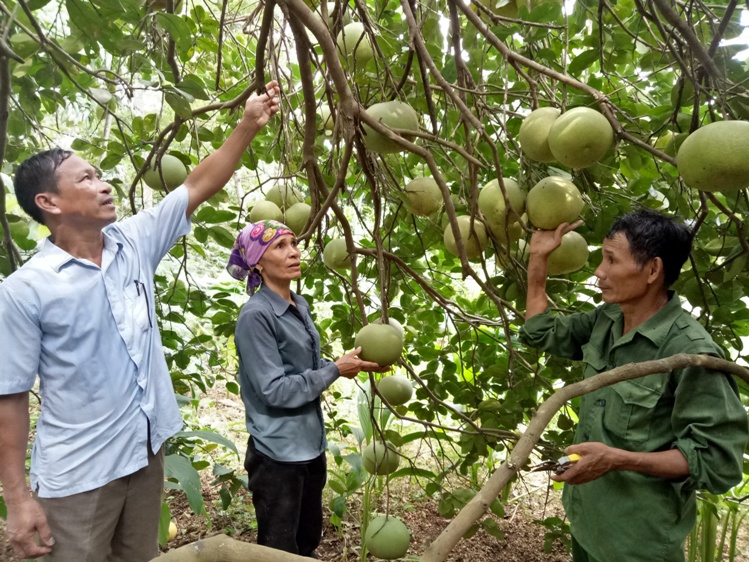 | Vườn bưởi hồng Quang Tiến cho thu nhập hơn 50 triệu đồng/năm của gia đình ông Phương. Ảnh Cảnh Thắng |