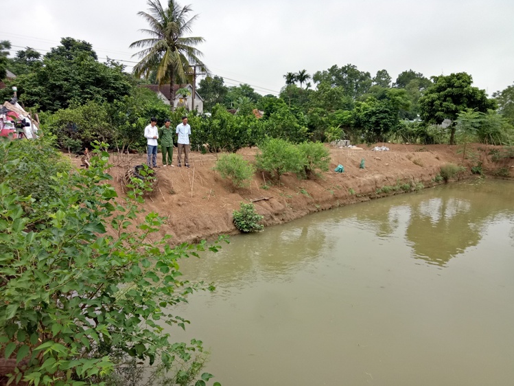 | Ngoài vườn bưởi ông Phương còn đào ao thả cá để cải thiện cuộc sống. Ảnh Cảnh Thắng. |