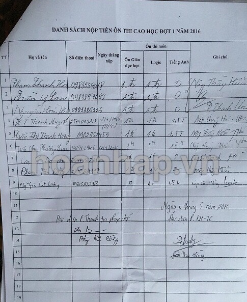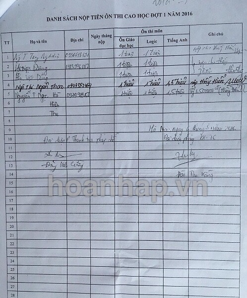 | Nhiều học viên đều xác nhận nhờ ông Phạm Hiển- cán bộ Phòng Đào tạo sau đại học nộp hộ |