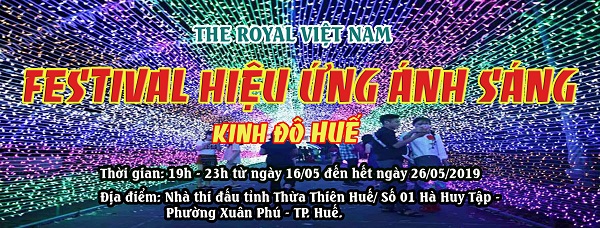 Lễ hội ánh sáng kinh đô Huế sẽ được diễn ra từ 16 đến 26 -5, tại Trung tâm thể dục thể thao tỉnh, số 1 Hà Huy Tập, phường Xuân Phú, Tp Huế do công ty TNHH Royal Việt Nam tổ chức.