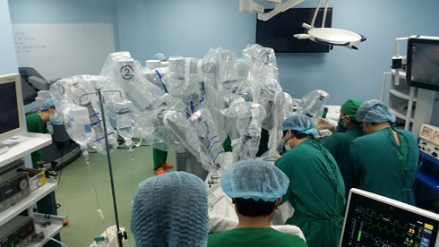 | Các bác sĩ đang tiến hành phẫu thuật bằng robot |