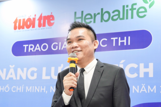 Ông Nguyễn Thành Đạt, giám đốc truyền thông Công ty Herbalife Việt Nam phát biểu tại buổi lễ trao giải cuộc thi.