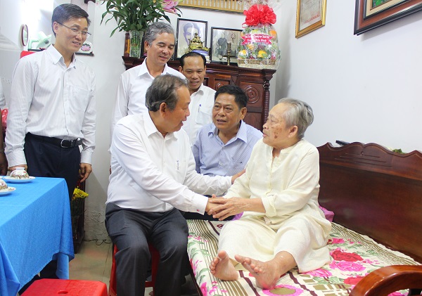 | Phó thủ tướng thường trực Chính Phủ Trương Hòa Bình thăm, tặng quà gia đình thương binh Phạm Bá Lữ. |