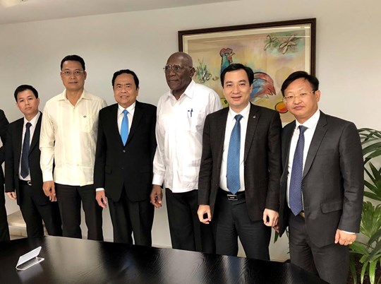 | Ủy viên Bộ Chính trị, Phó Chủ tịch thứ nhất Hội đồng Nhà nước và Hội đồng Bộ trưởng Cuba Salvador Valdés Mesa chụp ảnh lưu niệm cùng Đoàn công tác cấp cao của Uỷ ban Trung ương MTTQ Việt Nam |