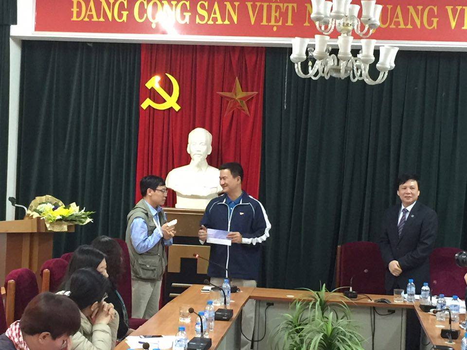 | Ông Trần Duy Phương – Tổng biên tập Báo Lao Động, động viên nhà báo Đỗ Doãn Hoàng |