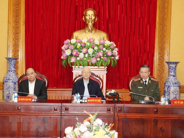 Phát biểu tại Hội nghị, Tổng Bí thư, Chủ tịch nước Nguyễn Phú Trọng, Thủ tướng Chính phủ Nguyễn Xuân Phúc ghi nhận, đánh giá cao sự nỗ lực, phấn đấu của lực lượng Công an nhân dân trong thực hiện nhiệm vụ bảo đảm an ninh chính trị, trật tự an toàn xã hội.