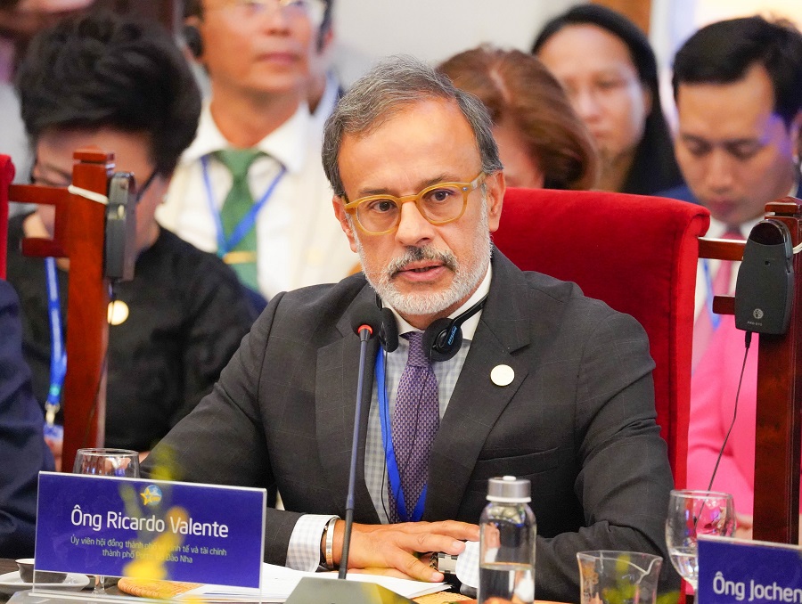 Ông Ricardo Valente - Ủy biên Hội đồng Kinh tế và Tài chính Thành phố Porto (Bồ Đào Nha) nhận định về biến đổi khí hậu và các giải pháp thúc đẩy phát triển nền kinh tế xanh.