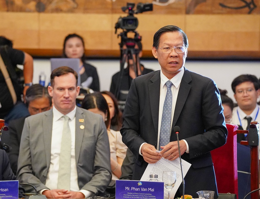 Phát biểu khai mạc chương trình, ông Phan Văn Mãi - Chủ tịch UBND TP Hồ Chí Minh thông tin, TP Hồ Chí Minh là đô thị lớn trên 10 triệu dân, là trung tâm kinh tế, văn hóa, giáo dục, khoa học công nghệ của Việt Nam. Thành phố luôn nỗ lực xây dựng môi trường sống tốt, làm việc thuận lợi, an toàn, hiệu quả cho người dân, doanh nghiệp trong và ngoài thành phố đến với địa phương. Tuy nhiên, TP Hồ Chí Minh cũng đang đối diện với những thách thức như biến đổi khí hậu, ùn tắc giao thông, thiếu hụt nhân lực, tác động của tính chu kỳ trong phát triển kinh tế.