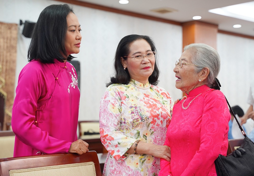 Lãnh đạo Thành ủy, HĐND, UBND TP Hồ Chí Minh trao đổi bên lề cùng các văn nghệ sĩ.
