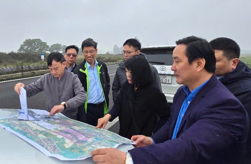Giám đốc Công ty Bateco Thắng Cường - anh Nguyễn Đức Linh (từ trái sang) chia sẻ về tiến độ dự án KCN Thắng Cường.