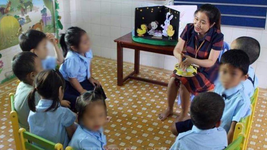 Cô giáo Võ Thị Hoàng Diệu trong giờ lên lớp với các em học sinh tại Trung tâm Hỗ trợ phát triển Giáo dục hòa nhập Phú Yên. Ảnh tư liệu: Xuân Triệu/TTXVN