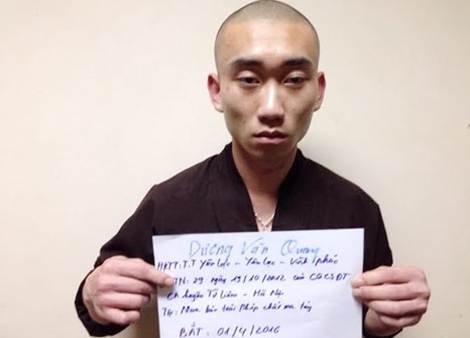 Ngày 12.4, Phòng 6 Cục Cảnh sát truy nã tội phạm (Bộ Công an) cho biết, đơn vị vừa bắt nghi can trốn truy nã Dương Văn Quang (22 tuổi, trú tỉnh Vĩnh Phúc) khi đang ẩn náu tại chùa Khai Nguyên ở quận Tây Hồ, Hà Nội.