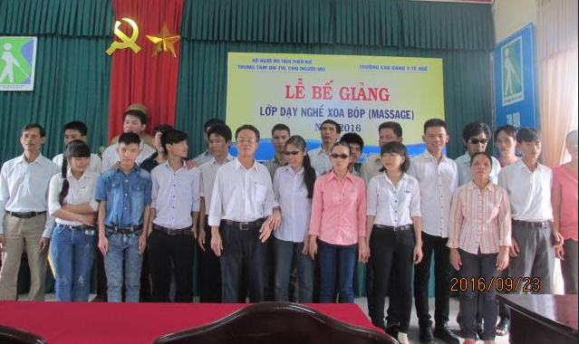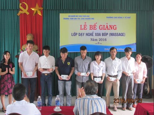 HOANHAP.VN - Sáng ngày 23/9, Trung tâm Dạy nghề và tạo việc làm cho người mù tỉnh TT Huế tổ chức lễ bế giảng lớp dạy nghề Massage cho 22 học viên thuộc các tỉnh miền trung và tây nguyên.