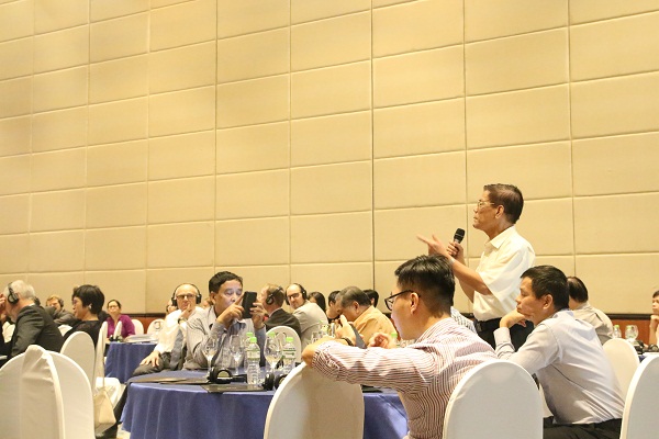 | Các đại biểu trả lời chất vấn tại buổi lễ. |