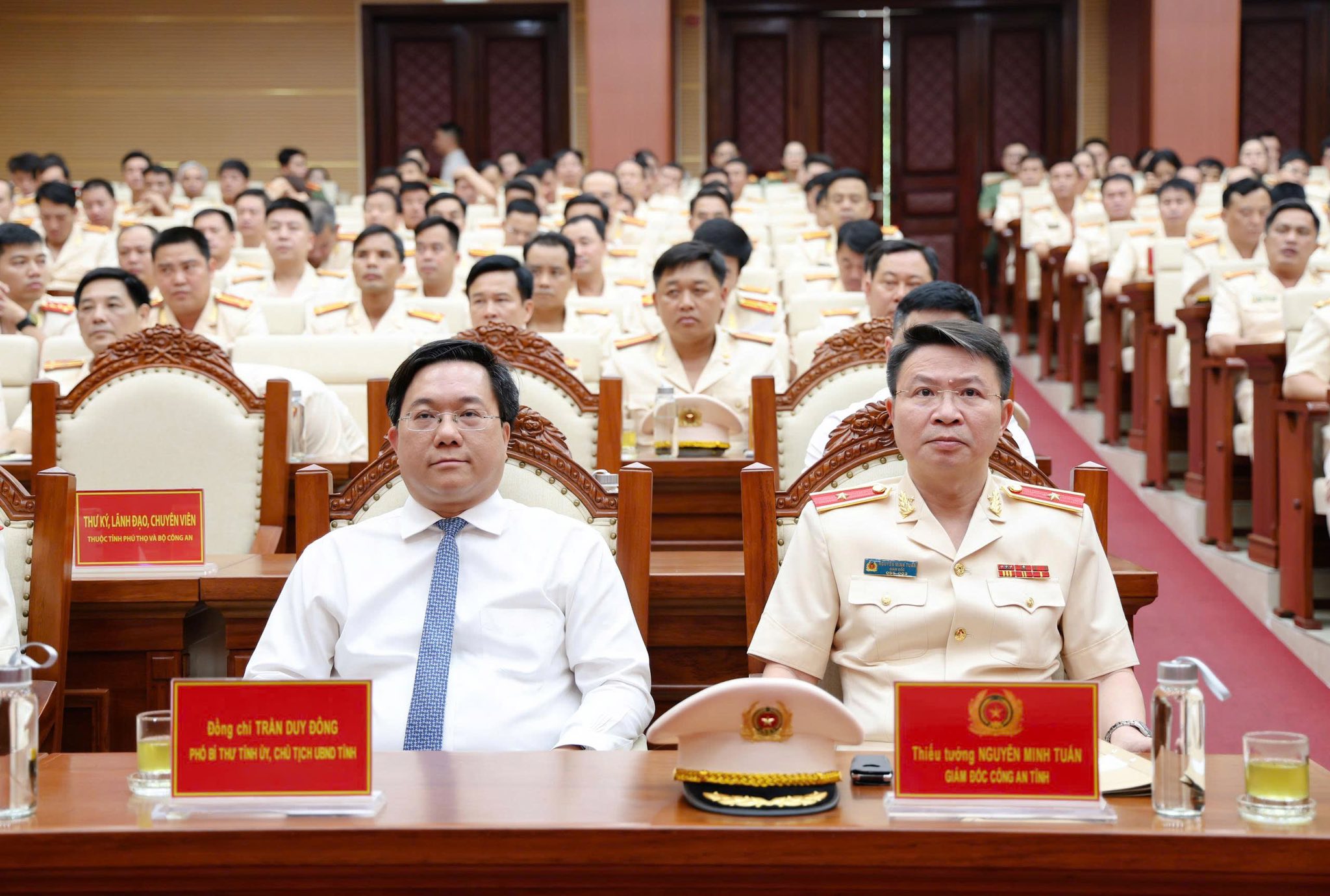 Tại buổi lễ đã công bố Quyết định của Bộ trưởng Bộ Công an về việc sáp nhập Công an tỉnh Vĩnh Phúc, Công an tỉnh Hoà Bình và các tổ chức trực thuộc vào Công an tỉnh Phú Thọ. Theo đó, tổ chức bộ máy Công an tỉnh Phú Thọ mới gồm 29 phòng và đơn vị tương đương. Buổi lễ cũng thông báo Quyết định của Bộ trưởng Bộ Công an về việc bố trí đồng chí Thiếu tướng Nguyễn Minh Tuấn – Uỷ viên Ban Thường vụ Tỉnh uỷ, Giám đốc Công an tỉnh Phú Thọ giữ chức vụ Giám đốc Công an tỉnh Phú Thọ (mới) sau sáp nhập; Giám đốc Công an tỉnh Phú Thọ được thăng cấp bậc hàm từ Đại tá lên Thiếu tướng. Tiếp đó, công bố và trao Quyết định của Bộ trưởng Bộ Công an về công tác cán bộ đối với các đồng chí Phó Giám đốc Công an tỉnh. Theo đó, bố trí 8 đồng chí giữ chức vụ Phó Giám đốc Công an tỉnh Phú Thọ sau sáp nhập.