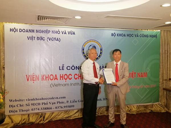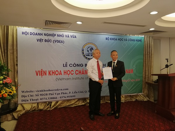 | Ông Nguyễn Trung Thực trao quyết định thành lập cho Viện trưởng Mai Doãn Quý |