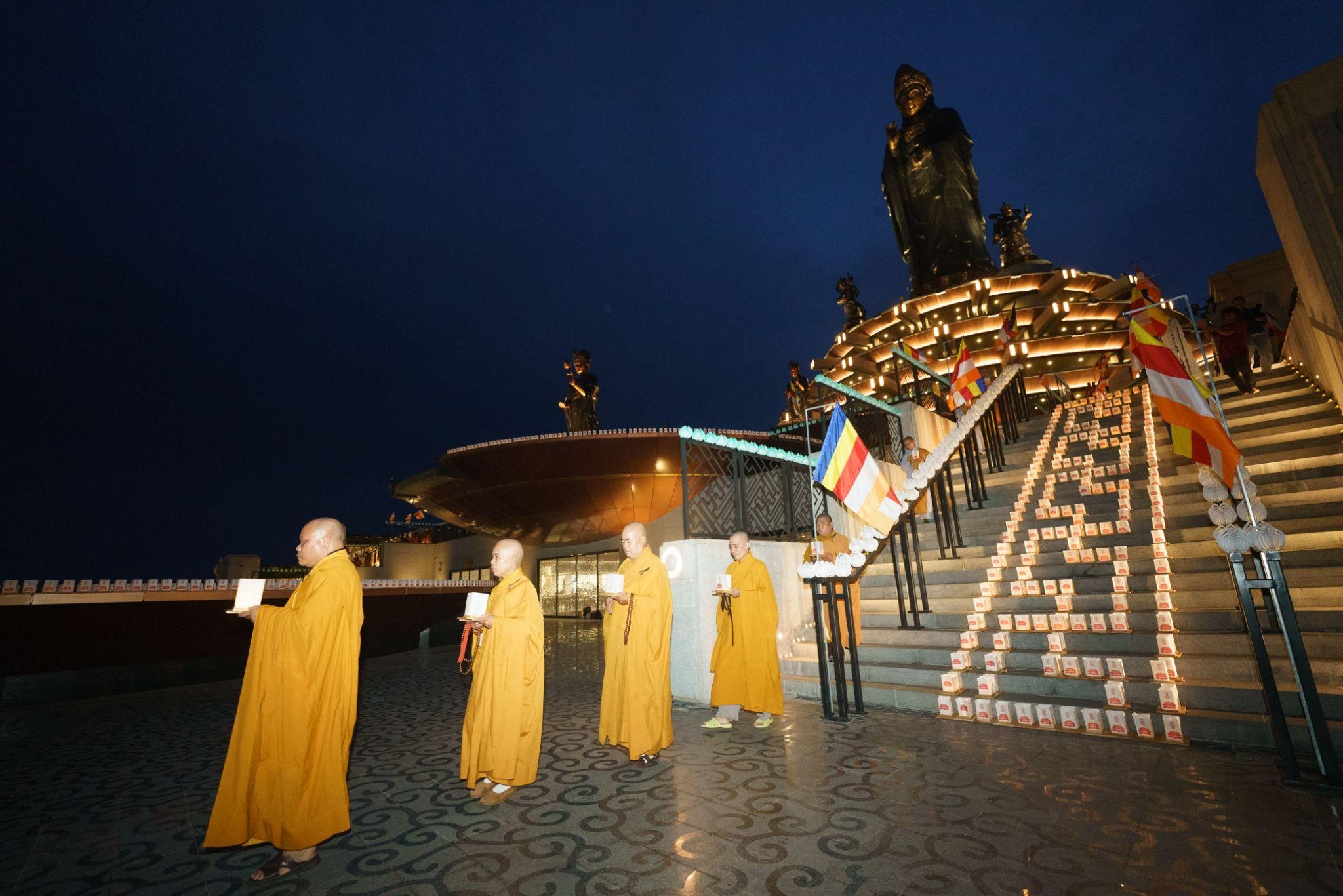 Tối 8/6, tại khu vực đỉnh núi, Giáo hội Phật giáo Việt Nam tỉnh Tây Ninh và Khu du lịch Sun World Ba Den Mountain đã tổ chức Đại Lễ dâng đăng tại quảng trường dưới chân tượng Phật Bà Tây Bổ Đà Sơn, để kính mừng lễ vía.