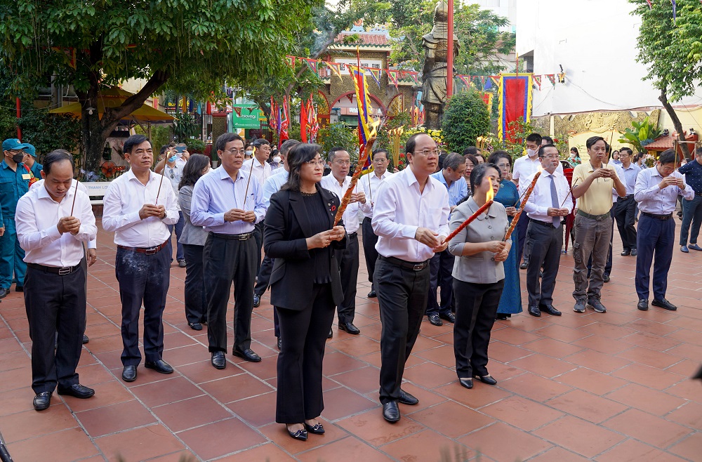 Lãnh đạo Thành phố cùng đại biểu dâng hương tại tượng thờ Đức Thánh Trần Hưng Đạo.