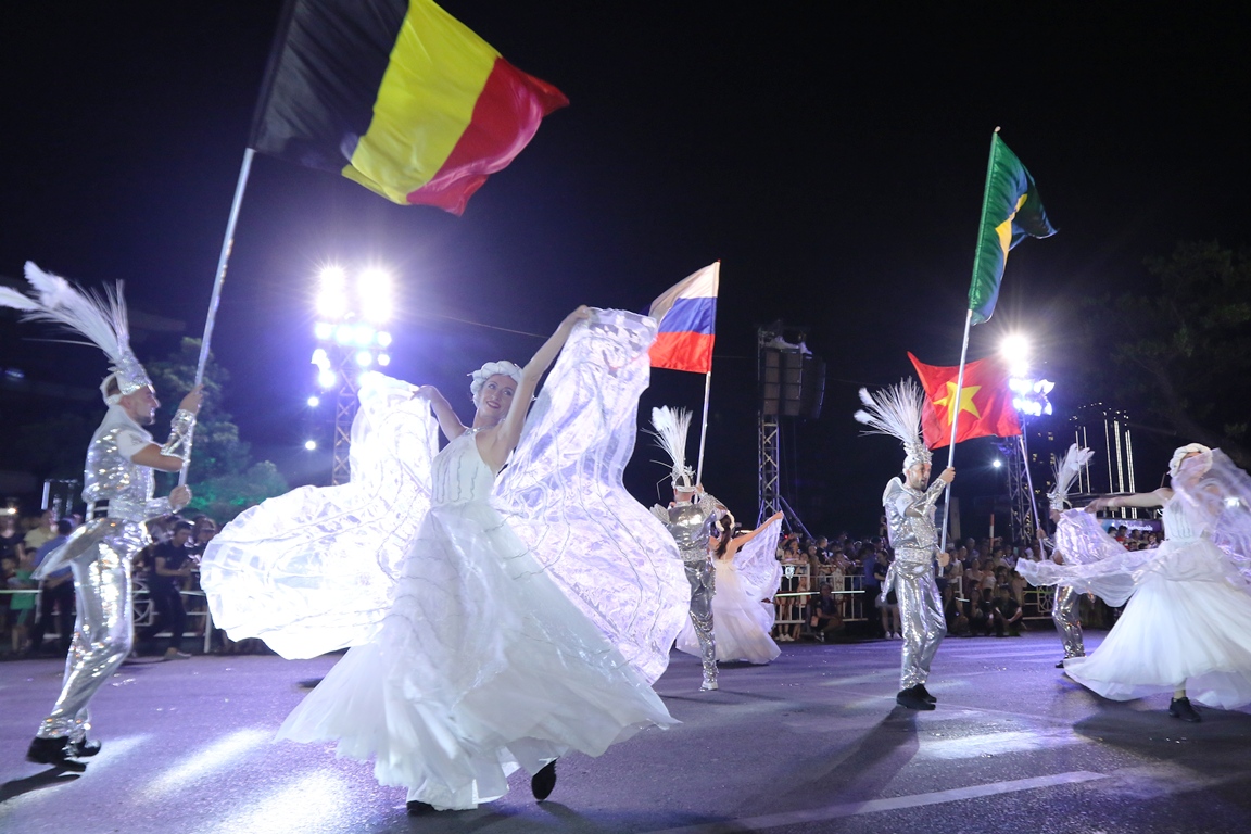 4 xe hoa, 80 vũ công quốc tế dẫn dụ người xem đi từ miền cảm xúc này đến triền phấn khích khác, khi liên tục cống hiến những màn trình diễn nghệ thuật, những vũ điệu tưng bừng, rộn rã.