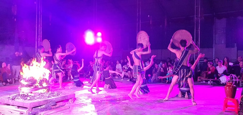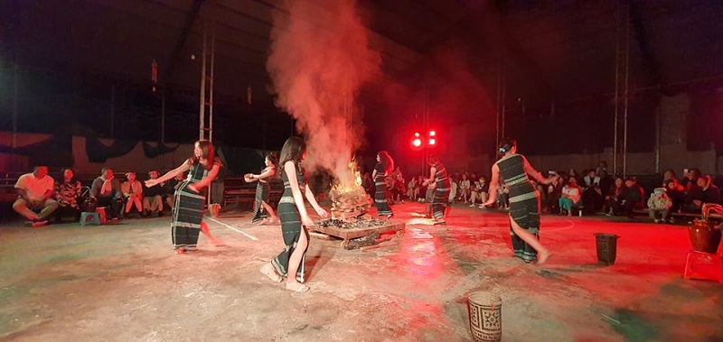 Trong phần nghi lễ, mọi người sẽ được nghe giới thiệu về buôn làng, sự ra đời của văn hóa cồng chiêng và bức tranh cuộc sống của các dân tộc dưới chân núi Lang Biang. Trong phần nghi lễ, quan trọng nhất có lẽ là nghi lễ cầu thần Lửa. Già làng sẽ mời trưởng đoàn đốt lửa và những nam thanh nữ tú người dân tộc sẽ nhảy điệu ching Wă kwằng để chào đón thần linh và mừng lúa mới.