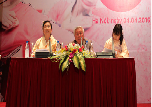 Từ trái qua: Bà Suzuki Mari- Giám đốc điều hành lễ hội hoa anh đào lần thứ 10, ông Vũ Khắc Liên- Chủ tịch Hội Giao lưu văn hóa Việt Nam- Nhật Bản.