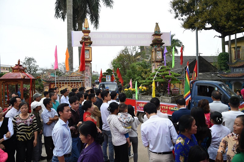 Đoàn rước dài khoảng 500m có sự tham gia của hàng nghìn người trong trang phục truyền thống cùng với cờ xí, ô lọng hoà cùng tiếng nhạc, tiếng trống rộn rã được cử hành trên triền đê sông Hồng. Khi về đến Đình làng các lễ vật được đưa vào trong đình để dâng lên Đức Thành Hoàng Làng và Ông Tổ nghề hoa cây cảnh Tô Trung Tự. Sau đó chính quyền địa phương cùng với nhân dân long trọng tổ chức lễ khai hội cùng với các nghi thức tế lễ long trọng.
