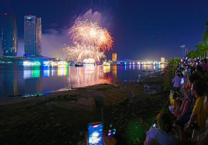 Đông nghẹt khán giả thưởng thức pháo hoa trên các con phố Đà Nẵng.