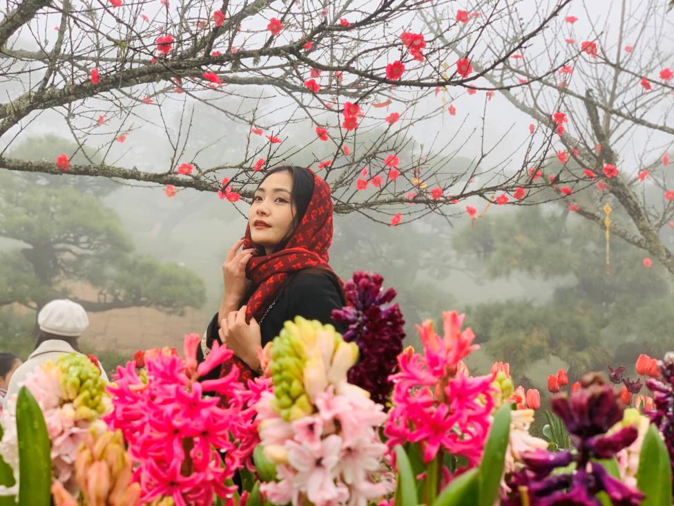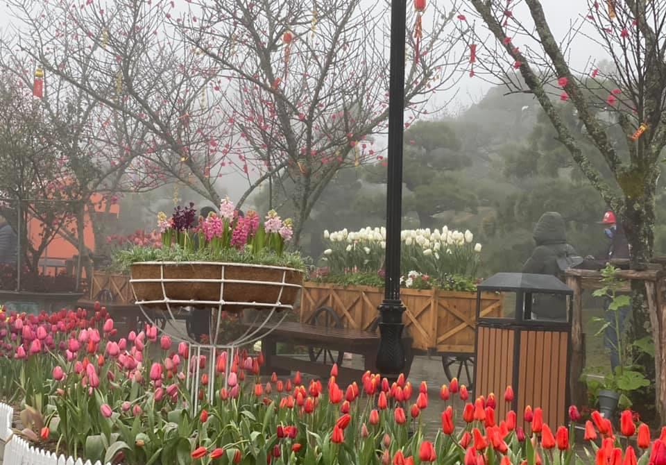 Ngậm hơi sương lạnh, hoa trồng ở miền sơn cước này dường như càng thêm căng mọng, rực rỡ. Hàng trăm gốc đào bung hoa thắm giữa màn sương mờ. Những chậu lan rừng khổng lồ, hàng ngàn chậu cúc mâm xôi, hoa xác pháo hay tulip đủ màu kiêu hãnh khoe sắc…