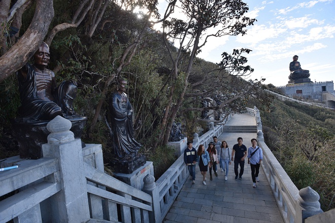 Hành trình chiêm bái, tìm về thiền tịnh trên đỉnh Fansipan, với nhiều du khách, ấn tượng nhất là khi bước trên đường La Hán. “Giống như được bước đi trong cõi Phật, khi bạn được chiêm ngưỡng 18 vị La Hán từ bi, dưới những gốc đỗ quyên xù xì mốc thếch rêu phong, thấy mây bay bảng lảng quanh mình, vờn múa quanh thân tượng…”, Đỗ Khánh Huyền- một Phật tử trẻ từ Nam Định mô tả cảm xúc của cô khi tham quan chốn này.
