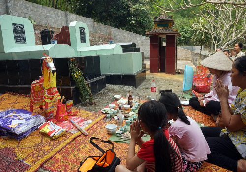 Con cháu thành tâm thắp hương, tảo mộ ngày thanh minh (ảnh: PM).
