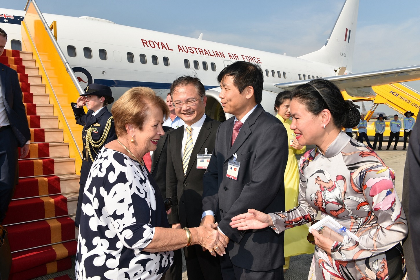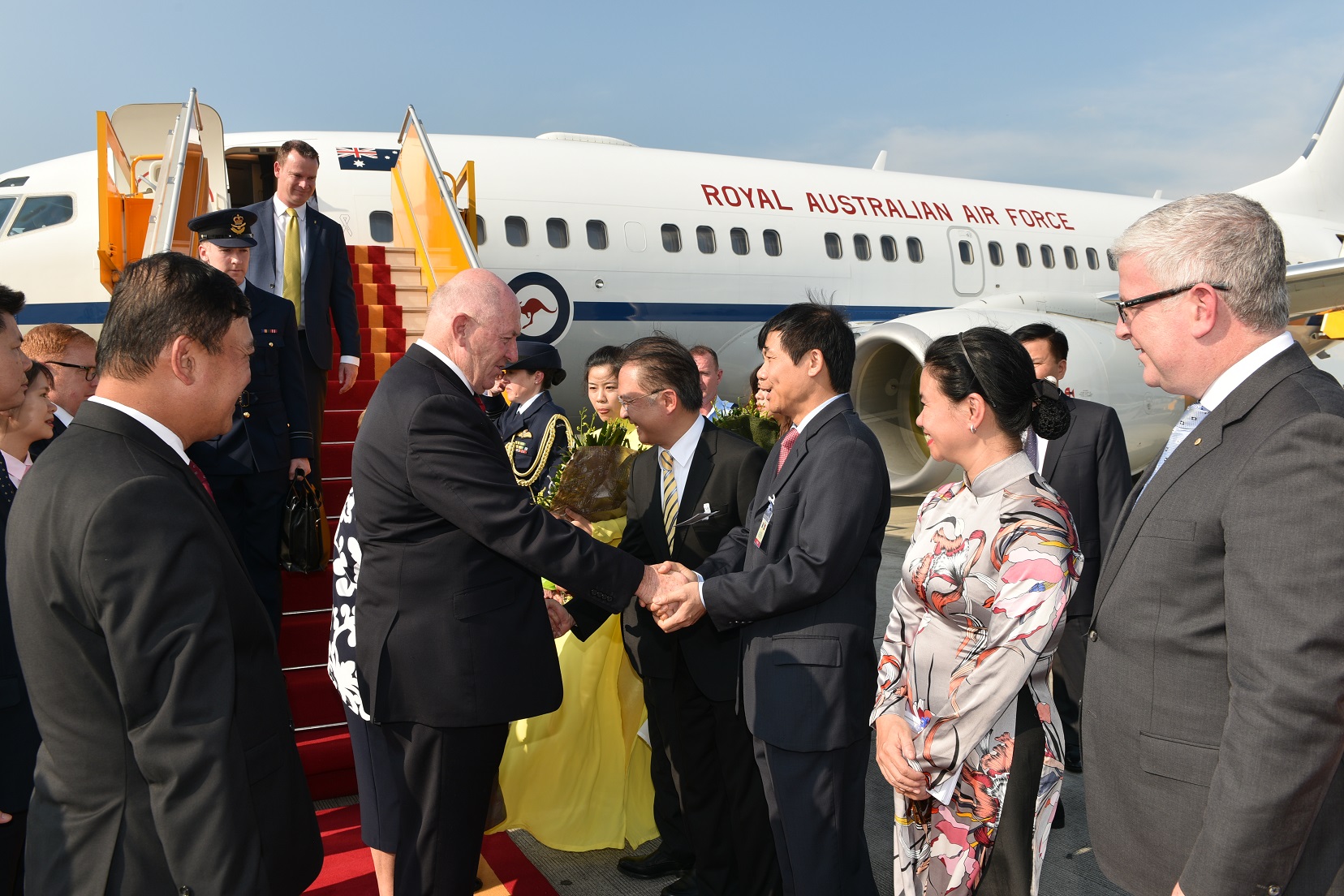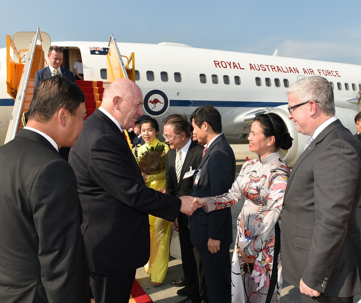 Toàn quyền Australia Ngài Peter Cosgrove rời phi cơ chuẩn bị cho nghi lễ tiếp đón